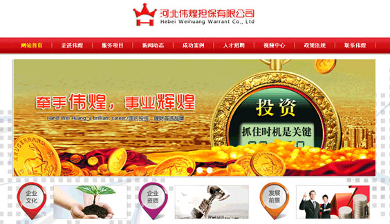 負責河北偉煌擔保有限公司網(wǎng)站設計制作開發(fā)等網(wǎng)站建設服務,偉煌擔保是以金融行業(yè)等相關配套服務為主,故網(wǎng)站設計以橙、黃為主題,突出金融行業(yè)鮮亮的主題,符合行業(yè)特點。