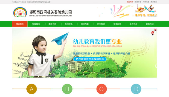 邯鄲市政府機關幼兒園創(chuàng)辦于1977年,分大、中、小三十五個教學班,有1300余名幼兒。在市政府等各級領導的關懷支持下,不斷擴大發(fā)展規(guī)模,是我市重點園所,并被省、市教委評為省“示范園”和市“一類”園所?,F(xiàn)在是武漢大學“0歲方案”教育基地,是省婦聯(lián)婦女兒童活動教育基地。為均衡邯鄲市幼教布點與幼教發(fā)展,邯鄲市政府機關幼兒園正在籌辦新園市政府機關實驗幼兒園。
