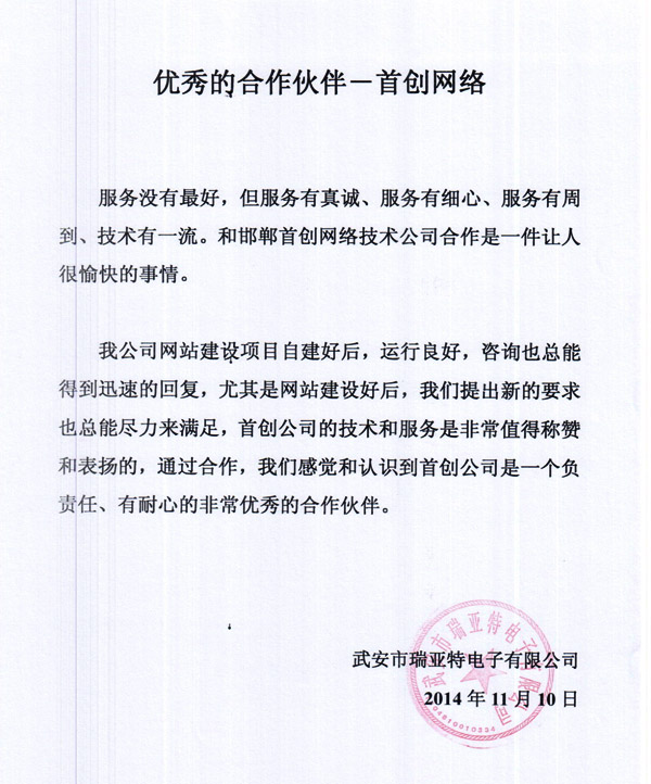優(yōu)秀的合作伙伴-首創(chuàng)網(wǎng)絡(luò)